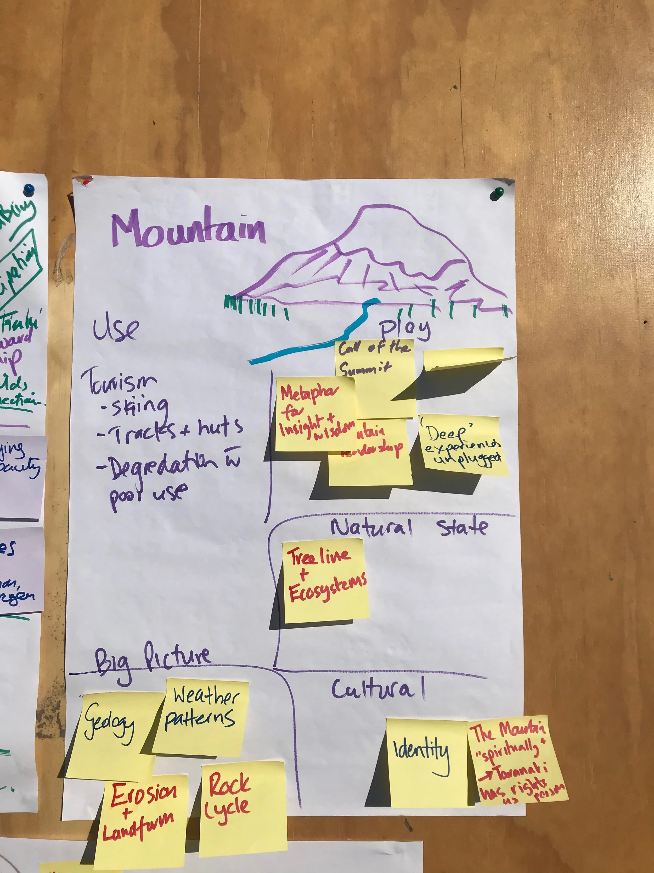 The diploma that emerged, was guided by the permaculture principles of ‘earth care, people care, and fair share’ to which were added ‘passion and play’ to create space for entrepreneurial, passion based learning. Hikoi (a Māori concept of a community march with purpose) were integrated. The sequence of the earth care component was structured around the Māori Pepeha, an introduction to self as embedded in landscape including mountain and river. The structure of the dipolma also reflected the view from campus of the mountain, river, land, caves, sea and sky.